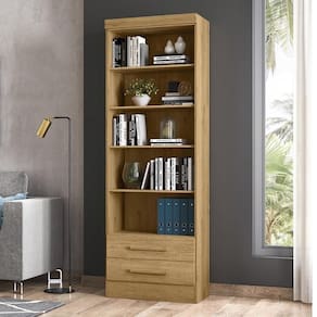 Estante Livreiro Com 2 Gavetas 3420 Freijó - Qmovi Freijó Estante Livreiro com 2 Gavetas 3420 - Qmovi Com um design contemporâneo, a Estante Livreiro é ideal para compor com a decoração de diversos ambientes, levando funcionalidade e praticidade na hora de organizar e decorar o seu espaço. Suas prateleiras são móveis e podem ser posicionadas conforme sua necessidade. ESPECIFICAÇÕES: - Estrutura em MDP - Pintura UV atóxica - 2 Gavetas - Corrediças metálicas - Prateleiras móveis - Puxadores resistentes em MDF - Sistema antitombamento - Móvel multifuncional - Ideal para livros e objetos decorativos