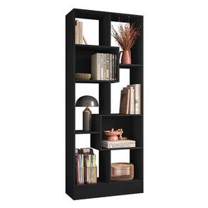 Estante Livreiro Com 8 Nichos Preto Fosco - Qmovi Preto Fosco Estante Livreiro com 8 Nichos - Qmovi A Estante Livreiro com 8 Nichos é um produto multifuncional, ideal para decorar e organizar diversos ambientes. Com um design moderno, composto por seus nichos de formatos diferenciados, ele leva beleza e praticidade ao seu espaço. O produto possui sistema antitombamento, que garante segurança e evita riscos de acidentes. ESPECIFICAÇÕES: - Estrutura em MDP - Pintura UV - 8 Nichos - Sistema antitombamento para evitar riscos de acidentes - Nichos com tamanhos variados para organização de objetos e decorações - Ideal para colocação de livros e objetos decorativos - Multifuncional, pode ser utilizado em diversos ambientes