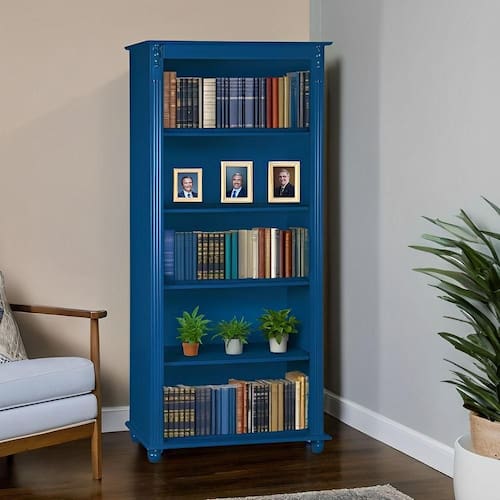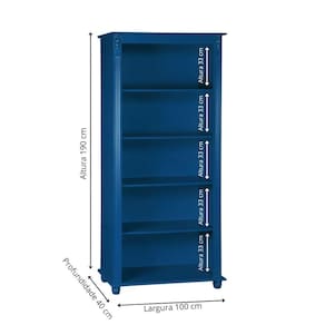 Estante Livreiro De Madeira Com 4 Prateleiras Pés Torneados - Azul Bic Laca