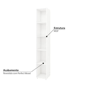 Características - Branco - Estrutura: MDP 15 mm - Acabamento: Perfect Wood - 5 Nichos - 4 Pés em polímero - Suporta até 26 kg - Produto entregue desmontado, montagem não inclusa. - Marca: DRW