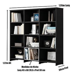 Estante Livreiro Multiuso Para Escritório 12 Nichos Trinidad - Preto