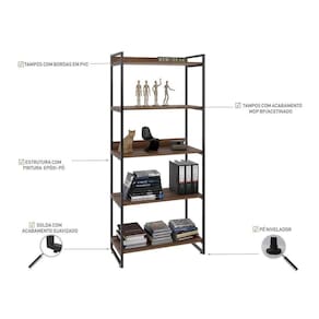 Características do Produto Material da Estrutura: MDP BP 15 mm/Aço. Peso Suportado: 5 Kg por prateleira. Tonalidade: Nogal. Acabamento: BP Acetinado e Pintura Epóxi. Escala de Brilho: Fosco. Possui Prateleiras: Sim. Material das Prateleiras: MDP. Possui Pés: Sim, Aço com pintura epóxi. Possui Rodízios: Não. Diferenciais: - Design moderno. - Fita de borda em PVC. - Pés niveladores. - Solda com acabamento suavizado. - Estrutura reforçada. Sistema de Montagem: Minifix / Cavilhas / Parafs. Manual de Montagem: Sim. Complexidade da Montagem: Baixa. Conteúdo da Embalagem: 1 Estante. Volumes: 1 Volume. Garantia do Fabricante: 3 meses contra defeito de fabricação. Montagem: Recomendamos que seja feita por um . Recomendação de Limpeza: Utilize pano levemente úmido.