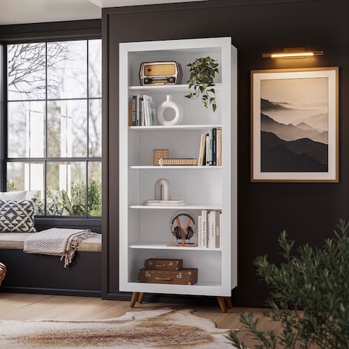 Características: Estrutura em MDP Acabamento em Pintura UV Atóxica Prateleiras móveis para melhor organização do ambiente Produto multifuncional, podendo ser utilizado em diversos espaços Vista emoldurada e robusta Ideal para colocação de livros e objetos decorativos Sistema anti-tombamento para evitar riscos de acidentes Pés com design retrô em madeira maciça.