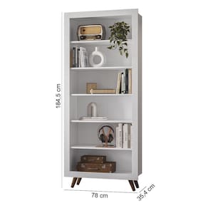 Características: Estrutura em MDP Acabamento em Pintura UV Atóxica Prateleiras móveis para melhor organização do ambiente Produto multifuncional, podendo ser utilizado em diversos espaços Vista emoldurada e robusta Ideal para colocação de livros e objetos decorativos Sistema anti-tombamento para evitar riscos de acidentes Pés com design retrô em madeira maciça.