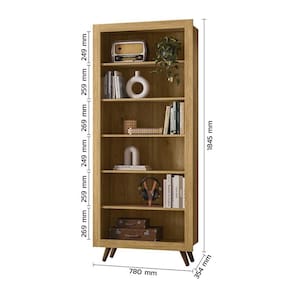 Estante Livreiro Retrô 6 Prateleiras - Qmovi A Estante Livreiro Retrô se destaca como um elemento essencial para a organização diária. Suas prateleiras ajustáveis oferecem flexibilidade para armazenar objetos variados, desde os essenciais do cotidiano até peças decorativas que expressam sua personalidade. Seu design marcante, com molduras elegantes e pés de madeira maciça no estilo retrô, é a escolha perfeita para quem busca um toque de modernidade e sofisticação no ambiente.