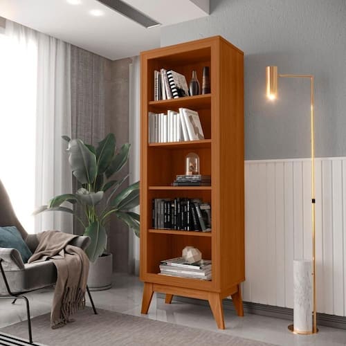 Ambiente Principal: Sala de Estar | Largura: 58 cm | Complexidade da Montagem: Média | Pessoas necessárias para montagem: 1 | Altura: 173 cm | Profundidade: 36,5 cm | Suporta até: 30 kg | Possui iluminação Não | Peso 24 kg | Origem do produto | Necessita montagem: Sim | Possui portas: Não Possui Portas | Possui gavetas: Não Possui Gavetas | Quantidade de caixas de embalagem: 1 | Possui prateleiras?: Possui 5 prateleiras | Possui nichos?: Não Possui Nichos | Possui espelhos?: Não Possui Espelhos | Possui vidro?: Não Possui Vidro | Modelo Eiffel; Estante; Armário; Sala de Estar; Escritório; Royal; | Marca: ViaNossa; ViaNossa Móveis; EDN Móveis; Eiffel; Royal | Material: MDP e MDF | Formato do móvel: Armário | Acabamento Pintura UV | Tempo de garantia: 3 meses | Tipo de garantia: Fabricante | Inclui manual de montagem: Sim Cedro
