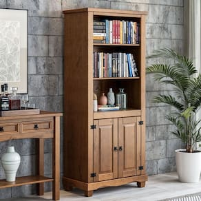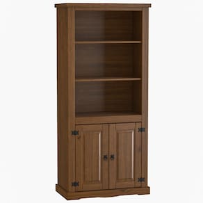 Combinando a beleza das portas com design em almofada em alto-relevo com a praticidade de 3 prateleiras internas essa estante de madeira é ideal para guardar livros, decorações ou objetos de uso diário com fácil acesso e protegidos da poeira. Além disso, os puxadores de argola em ferro e a estrutura em pinus maciço garantem durabilidade e um visual rústico sofisticado. Perfeita para sua sala, home office ou quarto, essa estante multiuso oferece a solução de organização que você procura, sem abrir mão do estilo.