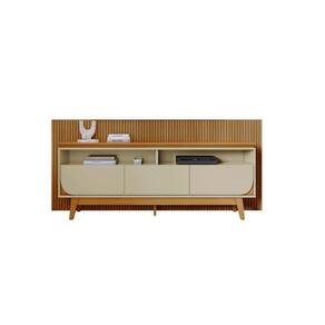 A Composição Luna combina design sofisticado e funcionalidade, sendo fabricada com uma estrutura em MDP e MDF, com chapas de 12, 15 e 25mm, que garantem resistência e durabilidade, e revestida com pintura UV de alta qualidade, que proporciona um acabamento impecável. Suas dimensões são de 2,380 x 2,445 x 0,185m para o painel e 2,000 x 0,625 x 0,360m para a bancada, oferecendo amplo espaço para acomodar TVs de até 75 polegadas. O painel apresenta um elegante frisado em MDF com design em baixo relevo, enquanto a bancada possui um tampo suspenso de 25mm com borda chanfrada, conferindo modernidade ao ambiente. Conta com três gavetas com corrediças telescópicas, sendo duas laterais com detalhes curvos que adicionam sofisticação e uma prateleira para organização adicional, além de pés usinados que garantem estabilidade e estilo. O espaço para TV é de 2,380 x 1,200mm no painel e 2,000 x 0,360m na bancada, suportando um peso total de até 45kg. O sistema de montagem Girofix facilita a instalação, tornando a Composição Luna a escolha ideal para transformar sua sala em um ambiente moderno e acolhedor.