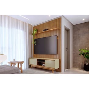 "A Composição Milo é uma escolha que une funcionalidade e sofisticação, trazendo modernidade para a sua sala. Fabricada com estrutura em MDP e MDF de 12, 15 e 25mm, possui acabamento em pintura UV de alta qualidade, que garante resistência e elegância. O painel, com dimensões de 1,790 x 1,200mm, apresenta um design sofisticado em MDF frisado com baixo relevo, enquanto a bancada, com dimensões de 1,640 x 0,365m, destaca-se pelos detalhes chanfrados na base e no tampo, que agregam um toque contemporâneo. O conjunto conta com duas portas deslizantes que otimizam o espaço e duas prateleiras para organização adicional. Os pés usinados complementam o visual com estilo e oferecem estabilidade. A composição suporta TVs de até 65 polegadas e até 45 kg, sendo ideal para diversos tamanhos de ambientes. O sistema de montagem Girofix facilita a instalação, tornando a Composição Milo uma opção prática, funcional e perfeita para transformar o seu espaço com charme e modernidade.