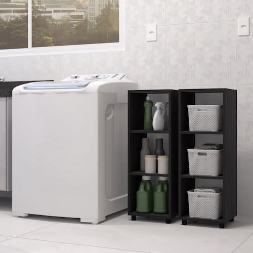 Estante Modular 3 Nichos Austin Preto - Estante Modular pode ser montada na horizontal ou vertical.