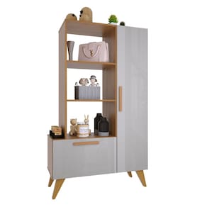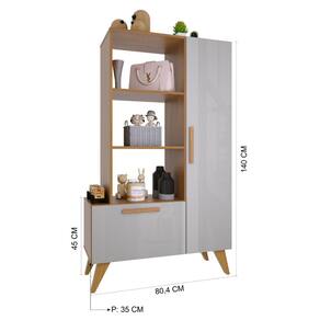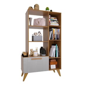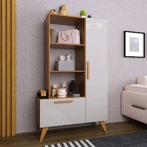 Estante Multiuso 1 Porta 1 Gaveta Versatil Indekes, ideal para otimizar o espaço com funcionalidade. Conta com cinco prateleiras bem distribuídas, uma porta com dobradiça metálica e uma gaveta alta e ampla com corrediça metálica que facilita a abertura. Os puxadores em MDF revestidos de melamina agregam um toque de sofisticação, combinando perfeitamente com os pés triangulares.