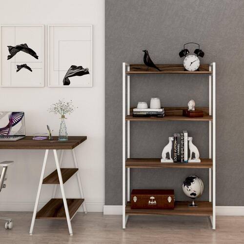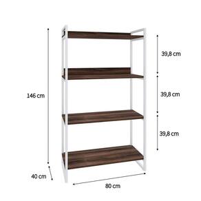 Estante Multiuso 146cmx80cm com 4 Prateleiras Kuadra Nogal/Est.Branca - Marrom