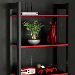 Tonalidade: Multicolorido | Produto: 01 Estante Multiuso | Material: Madeira Cor: Preto Vermelho