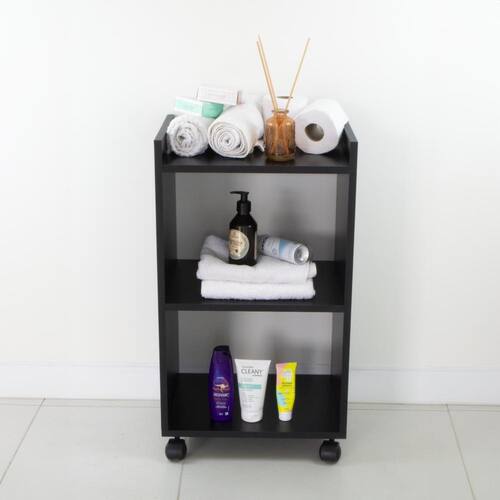 Estante Multiuso Armário Móvel para Banheiro Preto com Rodinhas 40cm