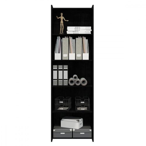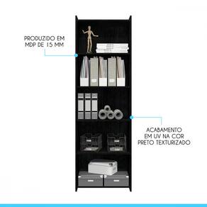 Características Técnicas Material: MDP 15 mm Acabamento: Pintura UV na cor preto texturizado Quantidade de prateleiras: 4 Dimensões dos nichos: Largura 54 cm x Altura 33,2 cm Capacidade por prateleira: 5 kg