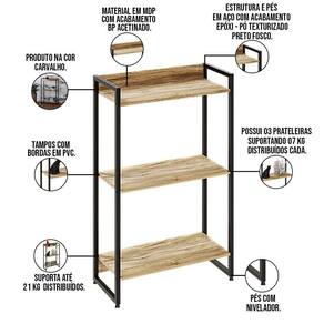 Com a Estante Multiuso Para Escritório Industrial 03 Prateleiras Areta 104x60cm C01 Carvalho - Lyam Decor, o conceito industrial ficará evidente no seu ambiente, tornando o mesmo muito mais moderno, sofisticado e organizado, garantindo isso com 03 prateleiras que deixam tudo prático e funcional. Uma característica muito forte dos móveis industriais é a união do tubular de estrutura exposta com a madeira, que dão todo o charme para agregar no estilo que está entre os mais buscados no ramo de arquitetura e decoração. Dimensões do produto (L x A x P) 60 x 104 x 30 cm Medidas Internas: Altura da prateleira: 39,7 cm Largura da prateleira: 56 cm Características: 03 prateleiras produzidas em MDP, com acabamento em BP acetinado. Pés em tubo de aço com sapatas niveladoras e acabamento em pintura texturizada epóxi, responsável por criar alta resistência á umidade e produtos químicos, facilitando também na limpeza e manutenção. Fita de borda em PVC. Solda com acabamento suavizado. Produto na cor Carvalho. Suporta até 7 kg por prateleira. Produto entregue desmontado, acompanha manual de montagem. Para a limpeza, utilize flanela seca. Evite contato com produtos químicos (solventes, thinner, acetona, etc) e não utilize nenhum tipo de esponja de aço. Observações importantes: A montagem será de responsabilidade do comprador; Responsabilizamo-nos pela entrega em todo território nacional, até onde as rodovias alcançam, entregas fluviais ou aéreas devem ser cotadas a parte; As imagens são ilustrativas, não acompanham objetos de decoração e eletrônicos; Não nos responsabilizamos, no ato da entrega, por subir escadas/elevadores ou transporte por guincho em apartamentos. Eventuais despesas são de responsabilidade do comprador; Confira as dimensões do produto e certifique-se de que passará normalmente por supostos elevadores, portas, escadas e/ou corredores de sua residência; NA
