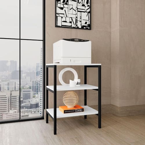 Altura: 77 cmLargura: 41 cmComprimento: 60 cmMaterial: Aço tubular com tampo em MDF e MDPPeso Suportado: Até 30 kg (distribuídos uniformemente)