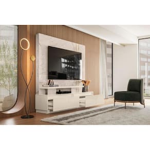 MDP"""A New Apolo é ideal para TVs de até 75 polegadas, oferecendo funcionalidade e design moderno. Fabricada em MDP com revestimento em pintura UV e acabamento em Hot Stamping, conta com dimensões de 1,830m x 1,760m x 0,405m e suporte para até 65 kg distribuídos.