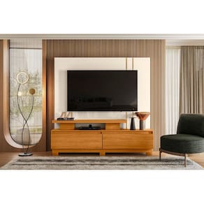"""A New Apolo é ideal para TVs de até 75 polegadas, oferecendo funcionalidade e design moderno. Fabricada em MDP com revestimento em pintura UV e acabamento em Hot Stamping, conta com dimensões de 1,830m x 1,760m x 0,405m e suporte para até 65 kg distribuídos.