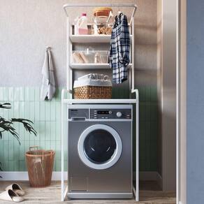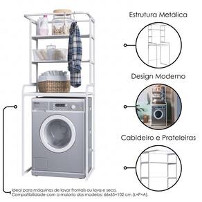 Metal e MDPEstante Organizadora P1065 para Lavanderia, prática e versátil para manter tudo sempre em ordem. Possui estrutura em metal de 20 mm (pintura epóxi) e MDP 15 mm (acabamento FF - Finish Foil). Conta com amplas prateleiras MDP, cabideiro em metal estratégico e espaço próprio para máquinas de lavar frontais ou lava e seca, medidas com alta compatibilidade para a maioria dos modelos: 66x65102 cm (LPA). MAQUINA DE LAVAR E DEMAIS OBJETOS NÃO INCLUSOS. Produto será entregue em 01 volume.