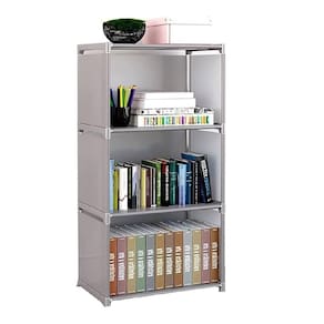 Estante Organizadora Porta Livros Com 4 Prateleiras Modular Brinquedos Quarto Banheiro Cozinha Sapateira Multiuso Cinza