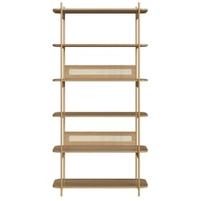 Estante Oslo Artesano 90 Cm (largura) Mdp Hanover Palha Sintética Bege Pé Metal Dourado
