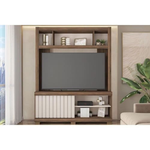 Estante P/ Sala Até 65 Pol Cinne C/ Ripado Pés 160x203cm Nogueira San Remo/off White - Caemmun