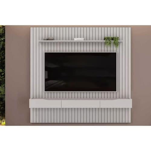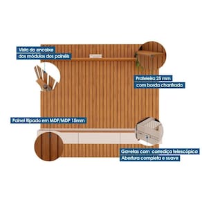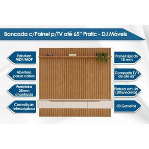 Rack Bancada c/ Painel p/ TV até 65 Pol Pratic Ripado 3 Gavetas 223x240cm Bali - DJ Móveis