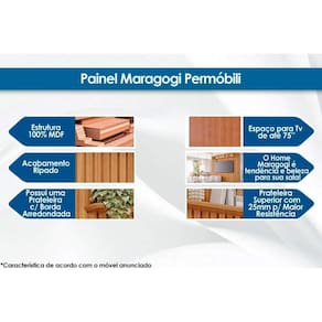 Painel Home p/ TV até 75 Pol Maragogi Ripado c/ Prateleira 230x220cm Nature - Permóbili