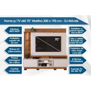 Home p/ TV até 70 Polegadas Martino c/ Prateleira Nichos e Pés 200x190cm Freijó/Off White - DJ Móveis