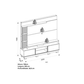 Dimensões(Cm): Comprimento(Profundidade): 39cm x Largura: 200cm x Altura: 190cm
