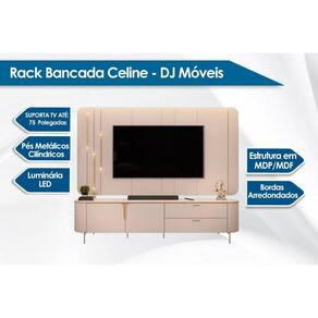 Maximize o estilo e a funcionalidade da sua sala de estar com o Rack Bancada com Painel para TV até 75 Polegadas Celine LED, 2 Portas e 2 Gavetas da DJ Móveis. Este conjunto, fabricado 100% em MDF, combina um design moderno e elegante com praticidade para acomodar sua televisão e organizar seus aparelhos eletrônicos.