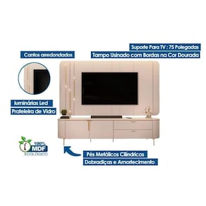 Dimensões(Cm): Rack Bancada c/ Painel p/ TV até 75 Pol Celine Led 241cm