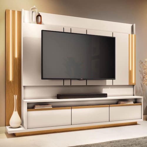 A Estante Painel de TV 75 Pol Montane Off White/Cinamomo, da HB Móveis é uma ótima opção para quem busca sofisticação e praticidade na hora de assistir TV.