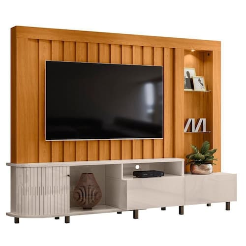 A Estante Painel Para 70 Pol 242cm Le Gard Z10 Off/Cinamomo, da Mpozenado, é a escolha perfeita para transformar sua Sala de Estar com um design moderno e funcional.