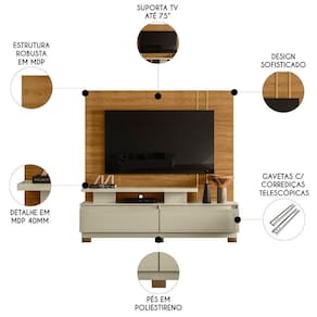A Estante Painel Para 75 Pol 183cm Luara M01 Cumaru/Opala, da Mpozenato, é a escolha ideal para quem busca sofisticação e praticidade na Sala de Estar.