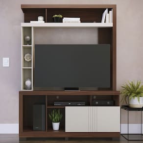Ideal para salas de estar compactas, essa estante home é um verdadeiro achado, unindo design inteligente e versatilidade. Com visual moderno, a Efraim não só comporta sua TV 50 polegadas com elegância, como também oferece prateleiras e nichos que podem ser aproveitados para exibir livros, lembranças ou plantas, trazendo um toque pessoal ao ambiente. Em outras palavras, o espaço de armazenamento é projetado para manter tudo organizado, desde eletrônicos até objetos de decoração, permitindo que você aproveite cada cantinho da sua sala.