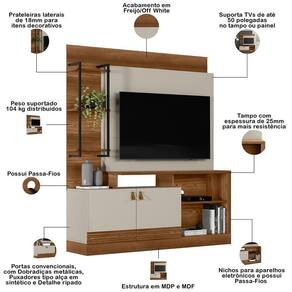 Espaço útil para TV no painel: 124 x 95 cm.