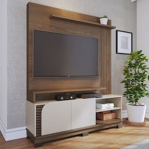 Prática e funcional, a Estante Painel Para TV 65 Pol 152cm Mayer C04 Amêndoa Off White Matte, da Lyam Decor, é o que falta para deixar a sua sala de estar elegante e convidativa.