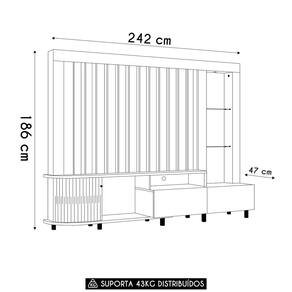 Fabricada com chapas de MDP de 15 e 25mm, o móvel combina resistência e durabilidade. Seu Painel de TV com detalhes sobrepostos cria um visual sofisticado, enquanto a luminária LED integrada valoriza o ambiente. O destaque fica por conta da porta deslizante flexível em MDF, que oferece praticidade e um toque de exclusividade com seu design curvo. As prateleiras de vidro de 5mm garantem espaço para objetos decorativos, enquanto o nicho central é ideal para acomodar aparelhos eletrônicos. Além disso, a Estante Para Sala conta com duas gavetas equipadas com corrediças telescópicas, proporcionando organização eficiente. Os pés em poliestireno asseguram estabilidade e um acabamento refinado, complementado pelo puxador em bronze que harmoniza com o visual, o Home Theater é ideal para TVs de até 70 polegadas, otimizando seu espaço e elevando o conforto da sua sala.