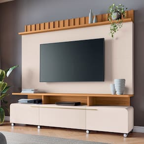 Ter uma sala de estar completa nunca foi tão fácil. Com a duplinha Estante Painel Para TV 70 Pol Artemis e Mesa de Centro Harmony B01 Off White Cinamomo, da Lyam Decor, será possível criar um ambiente moderno e funcional como você sempre quis.