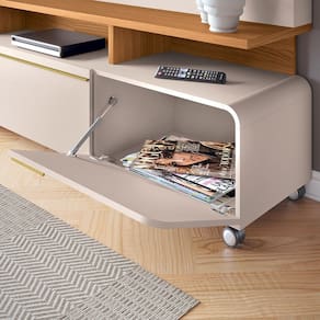 Com um design moderno e cantos arredondados, essa estante para sala é projetada para TVs de até 70 polegadas, o que deixará seu espaço muito mais imponente, enquanto o detalhe ripado confere e os puxadores metálicos em tom dourado adicionam um visual elegante. Para completar, os rodízios cromados de 50mm garantem mobilidade fácil e rápida, tornando essa estante home super versátil.