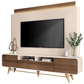 Os cantos arredondados não apenas garantem segurança, mas também criam uma fluidez visual que harmoniza com qualquer decoração. E para aqueles momentos especiais, a fita de LED embutida ilumina o ambiente, realçando cada detalhe e transformando sua sala de estar em um espaço convidativo e moderno. Além disso, essa estante é projetada para suportar TVs de até 85 polegadas, ideal para quem busca uma experiência cinematográfica em casa.