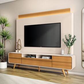 Ideal para TVs de até 85 polegadas, este painel suporta até 50kg distribuídos. Disponível nas combinações de cores Off White-Cinamomo e Off White-Castanho, adapta-se a diferentes estilos de decoração.