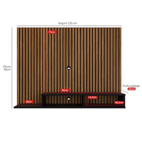 *Antes de realizar a compra recomendamos que verifique se o televisor se enquadra nas dimensões livre do painel, sendo: 75cm (A) x 120cm (L) x 26cm (P);