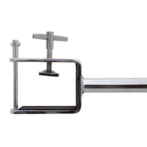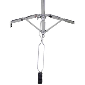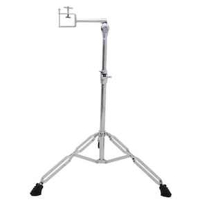 Estante para bongô profissional possui um acabamento cromado, ferragem dupla pesada, três pés emborrachados e altura ajustável.
