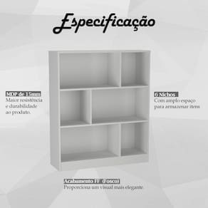 Estante Para Escritório Gamer B25, uma peça moderna e versátil, ideal para quem busca qualidade e funcionalidade. Estrutura produzida em MDP de 15mm, oferecendo solidez e resistência a peça. Contando com acabamento FF (Fosco), garantindo durabilidade e estilo ao produto. Composta por 6 Nichos, que oferecem amplo espaço para armazenar itens, acessórios e documentos. Suportando até 5kg cada nicho. Possui um design sofisticado que se adapta a qualquer ambiente da sua casa. Este móvel chegará na sua casa em 1 volume.