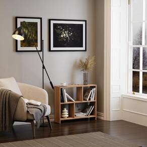 Possui compartimentos projetados para organizar livros, objetos decorativos e outros itens essenciais, mantendo tudo ao alcance das mãos para qualquer ocasião.