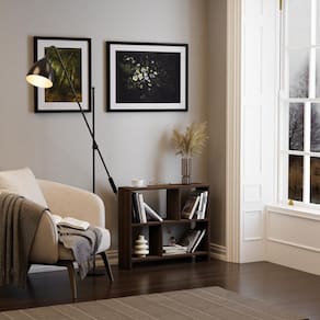 Possui compartimentos projetados para organizar livros, objetos decorativos e outros itens essenciais, mantendo tudo ao alcance das mãos para qualquer ocasião.