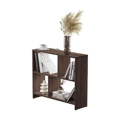 Possui compartimentos projetados para organizar livros, objetos decorativos e outros itens essenciais, mantendo tudo ao alcance das mãos para qualquer ocasião.
